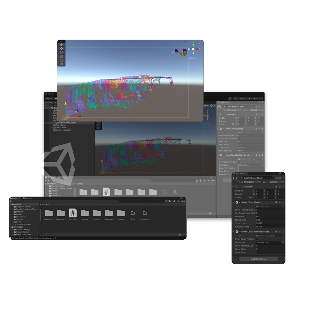 Unity Package は、LiDAR のリアルタイム点群データにアクセスするための SDK です。